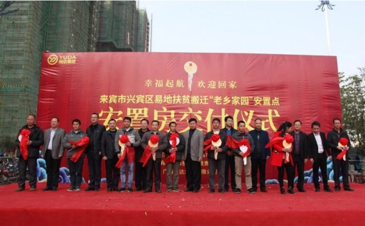 12月16日,来宾市兴宾区举行易地扶贫搬迁“老乡家园”安置点安置房交付仪式,来宾市委副书记,市委常委、常务副市长余治平,兴宾区委书记杨添才、区长周廷新、区委副书记罗胜奇以及我集团董事、副总裁邓亚德、副总裁宁涛、总裁助理莫丽欢参加了本次仪式。