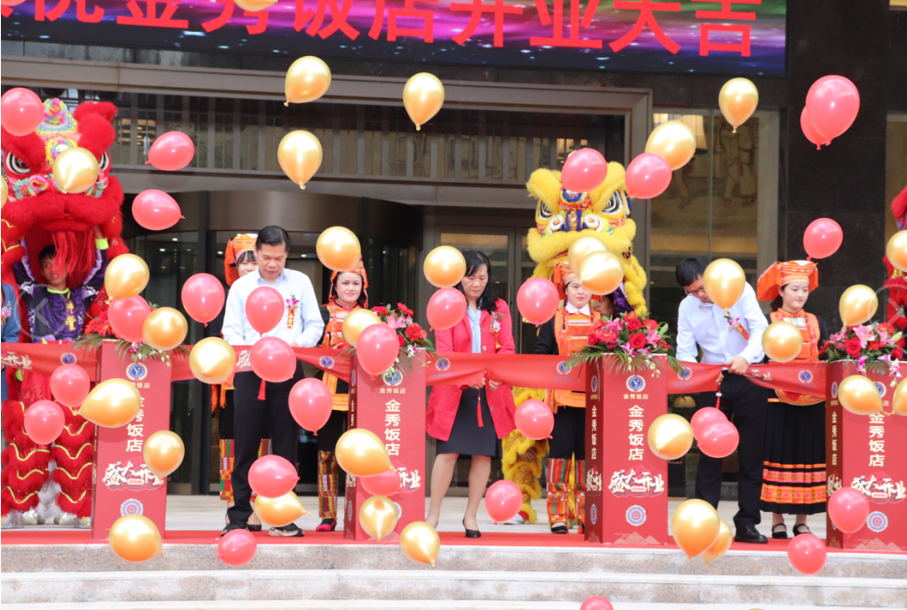 11月19日上午,广西裕达旅游集团旗下金秀饭店举行了隆重的开业典礼。金秀县政协主席梁爱华,金秀县委副书记、统战部部长欧树和,金秀县人大副主任赵群英,金秀县人民政府副县长陈伶莉等四家班子领导代表出席活动。控股集团领导及其他重要合作伙伴共同见证了开业典礼。