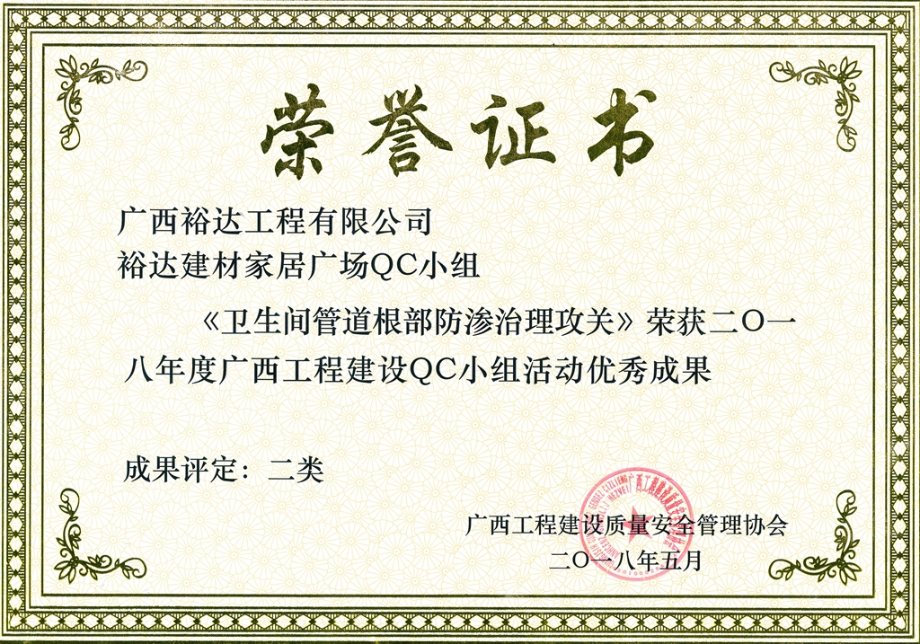 2018年度广西工程建设QC小组活动优秀成果