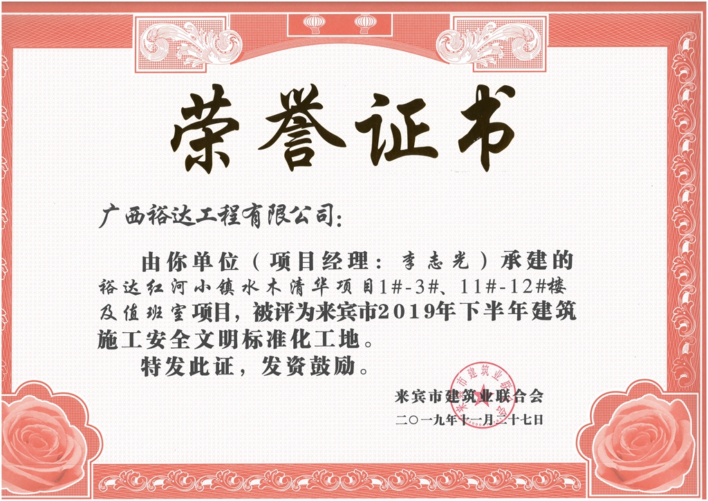 上一篇:裕达天悦城·莱茵公馆2#、5#楼及地下室被评为来宾市2019年下半年建筑施工安全文明标准化工地(项目经理:胡斌)